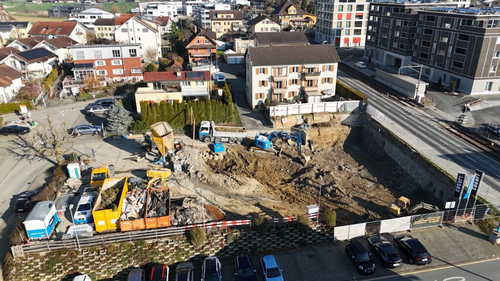 Im Rahmen des Neubauprojekts in Ballwil wurden umfangreiche Tiefbauarbeiten und Aushubarbeiten für ein Mehrfamilienhaus mit 11 Eigentumswohnungen ausgeführt. Die Arbeiten umfassten den sorgfältigen Baugrubenaushub, die Bodenstabilisierung sowie die Vorbereitung der Fundamentflächen.