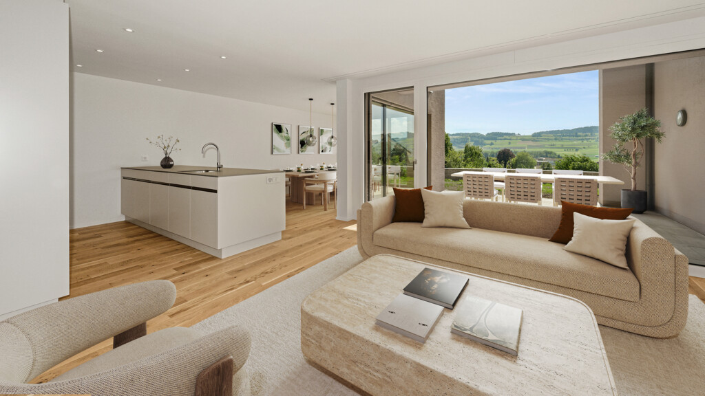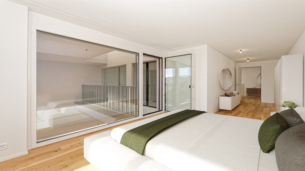Die 43 Eigentumswohnungen mit 2,5- bis 5,5-Zimmern verteilen sich auf vier Gebäude mit markanter Architektursprache. Durch die Staffelung am Hang ergeben sich Gartenwohnungen mit Sitzfläche, Geschosswohnungen mit Balkon und grosszügige Attikawohnungen mit zweiseitiger Terrasse, die alle eine hohe Privatheit garantieren.